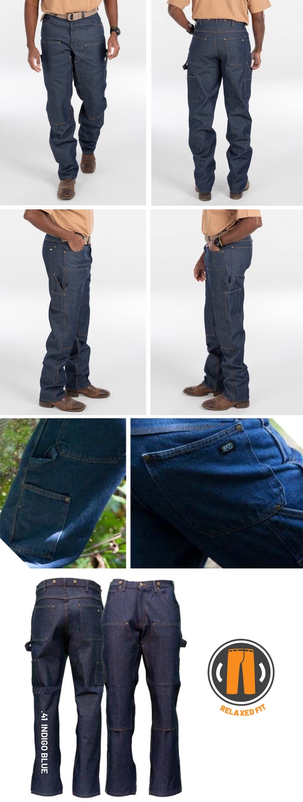 at the waist, and riveted front, watch, and hip pockets, this logger