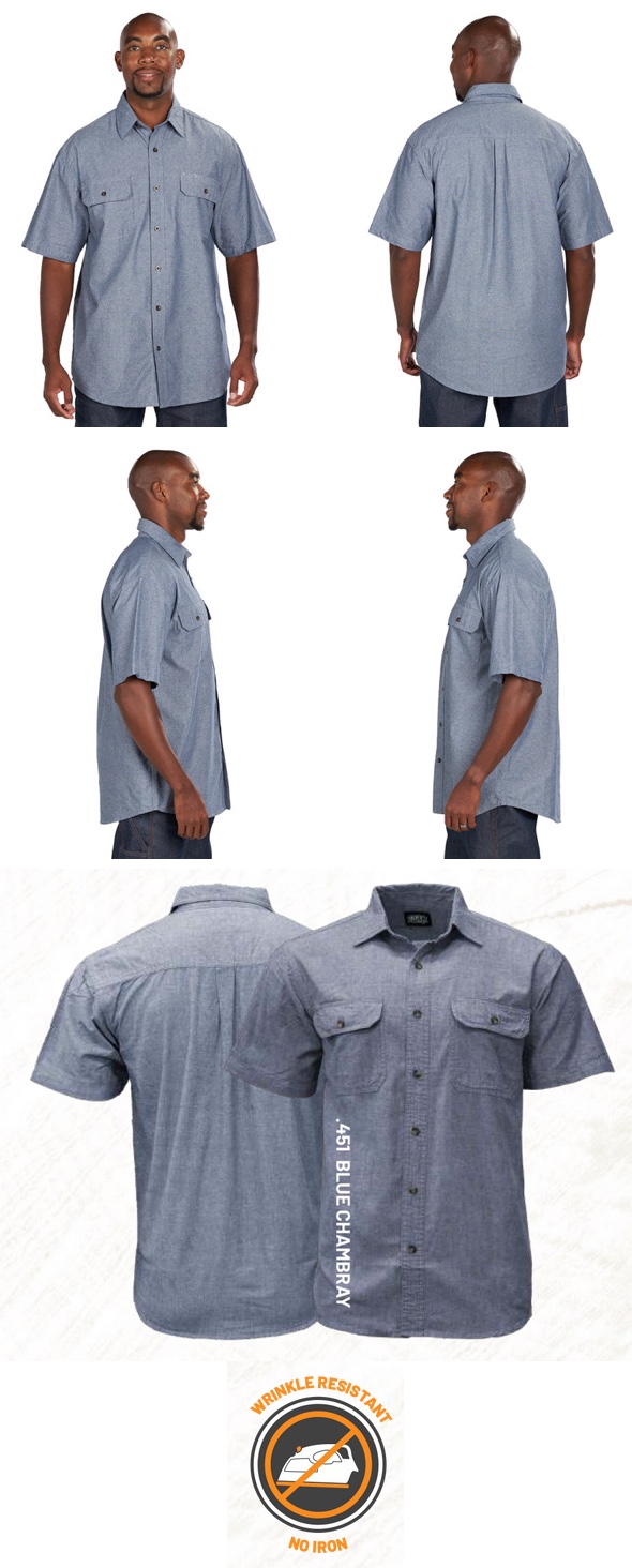 Conveniently Wrinkle Resistant and Ready for Work as soon as you slip it on. This KEY Light Weight Chambray Shirt has Stylish Button Closures for great looks. Easy to Wash but Never Needing an Iron. 100% Cotton Breathes which is great for Added Comfort on those hot days.